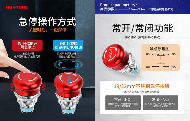 但是對于急停開關(guān)的作用是什么相信有很多的朋友們還不是特別的了解,那么HONYONE李工就來為大家具體的來介紹一下: