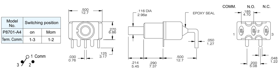 Contact Rating: 1A @125 VAC or 28 VDC