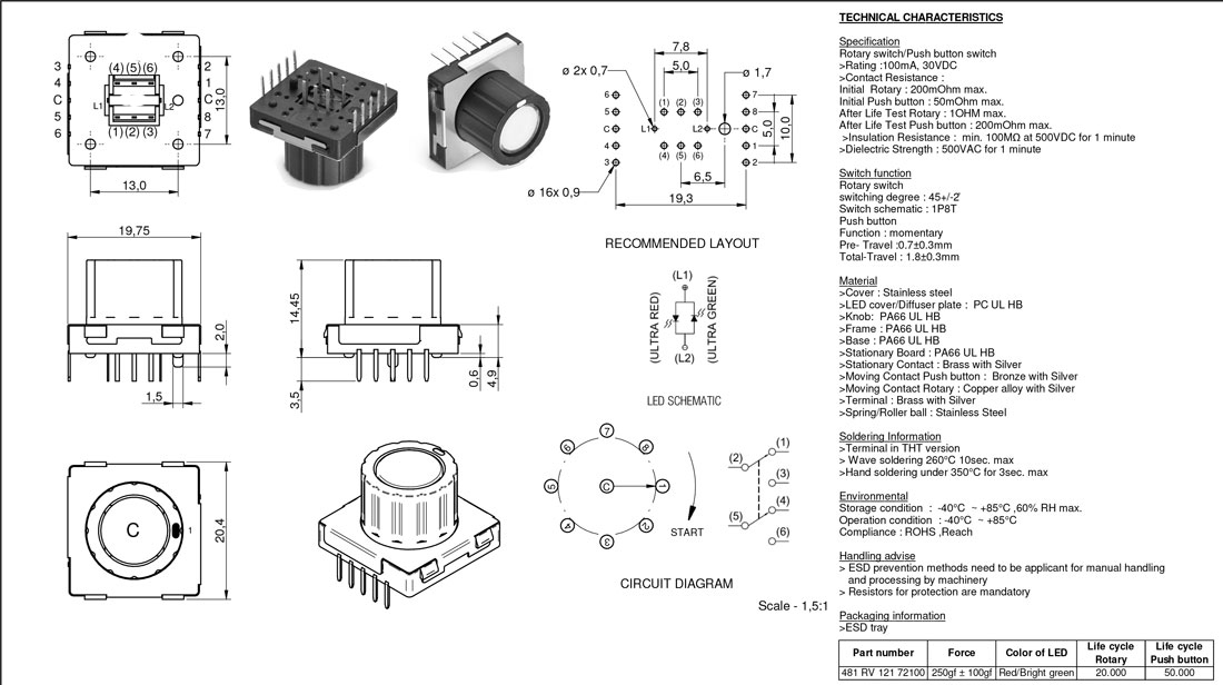 Initial Rotary : 200mOhm max.Initial Push button : 50mOhm max.