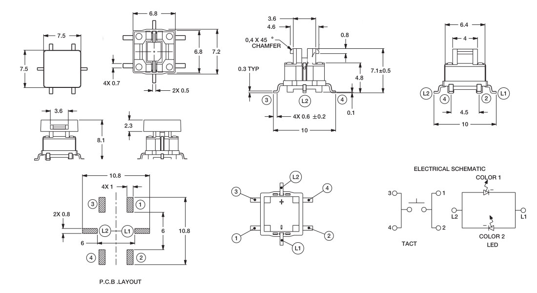Operating Force                      :180±50gf or 250+50gf