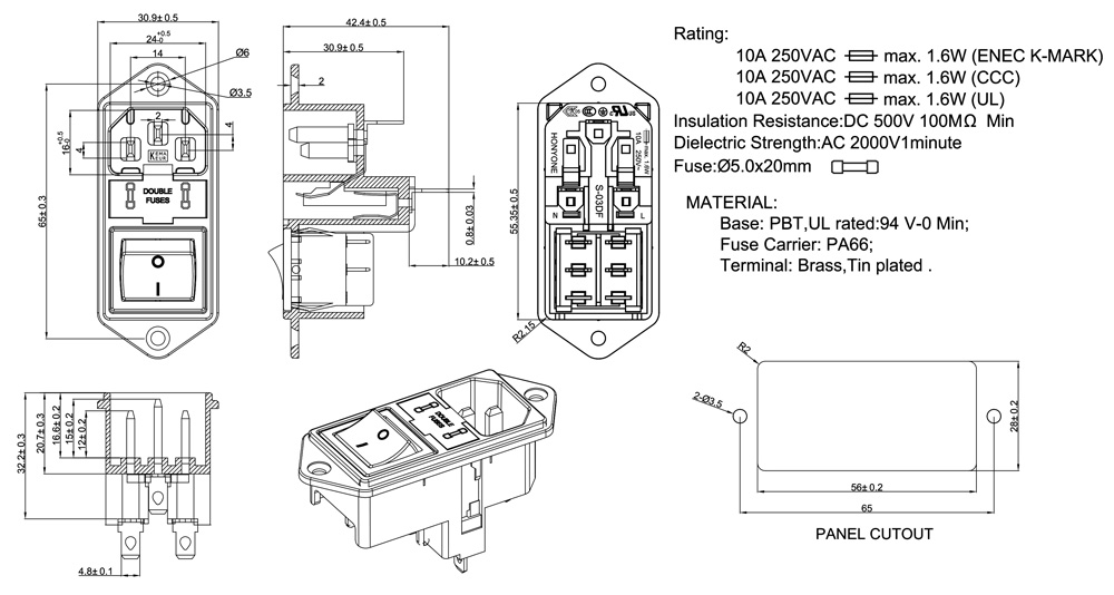 開關(guān)+插座+保險絲座 (5*20 fuse)