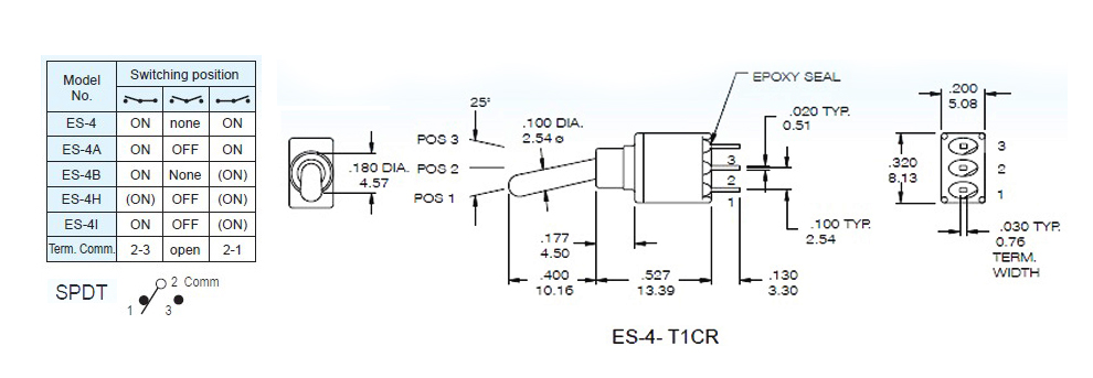 Contact Rating: R- 0.4 VA max @ 20 V AC or DC