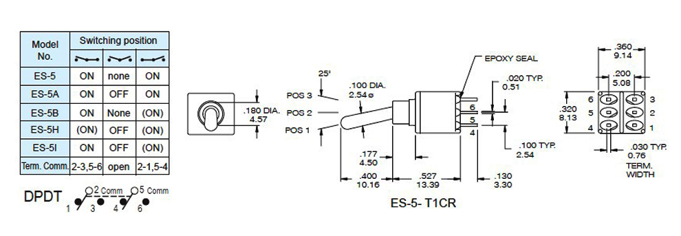 Contact Rating: R- 0.4 VA max @ 20 V AC or DC