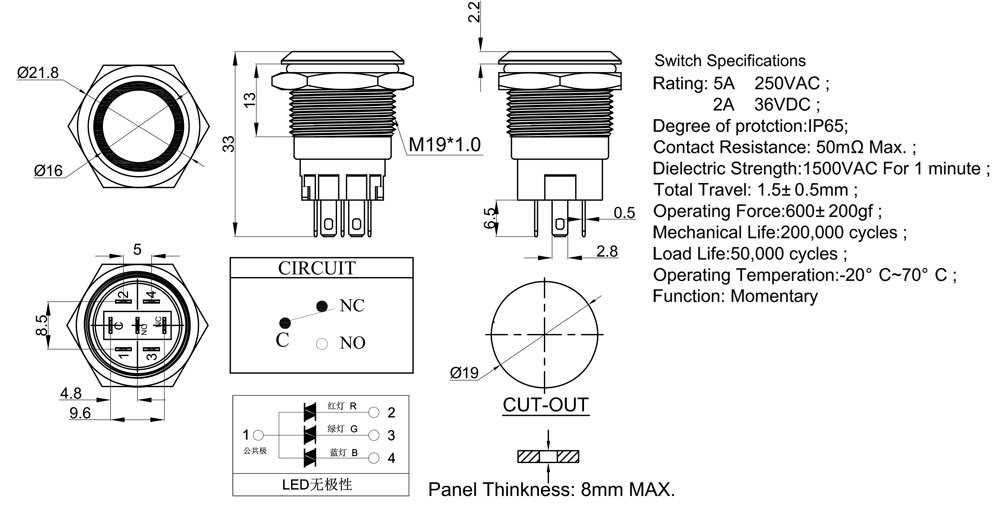 產品型號:PBM19-13Z-F-RRGB3-S0