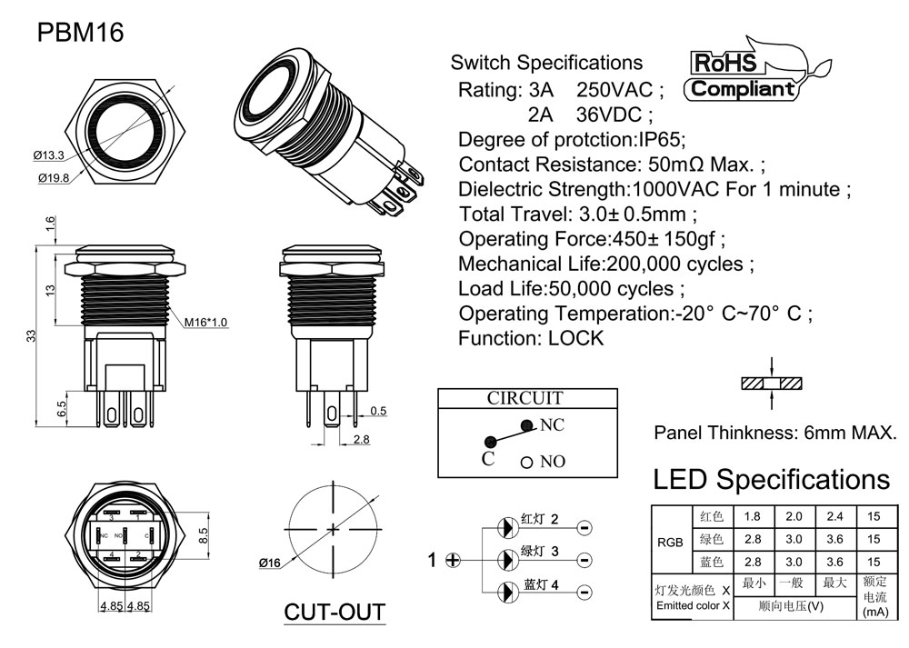 產品型號:PBM16-13M-F-RRGB3-S0-S