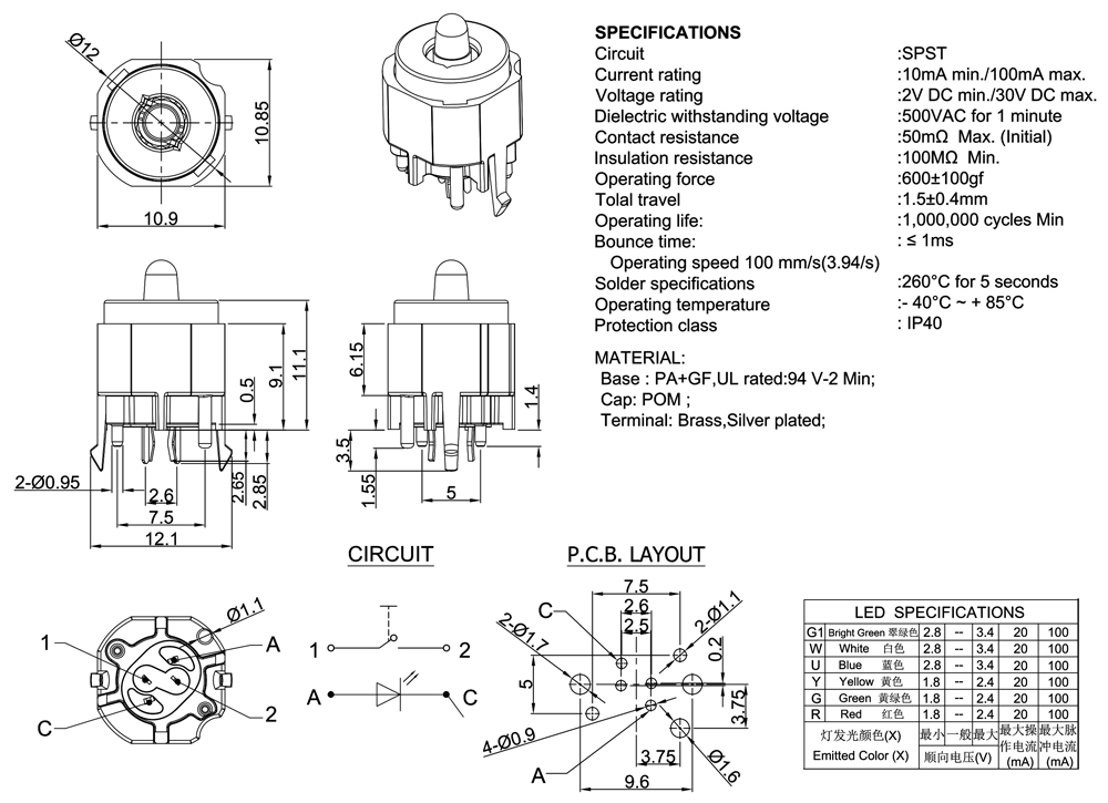 Solder specifications:260°C for 5 seconds
