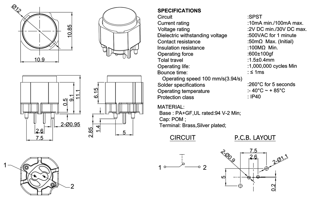 Operating life:1,000,000 cycles Min