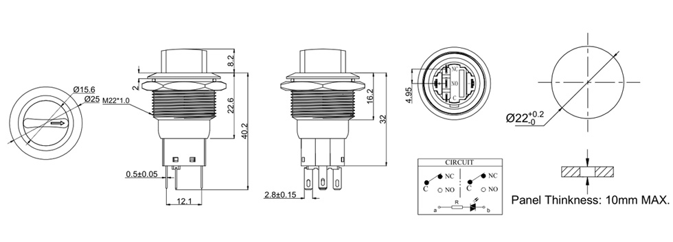 Installation dimension:16.19.22mm;