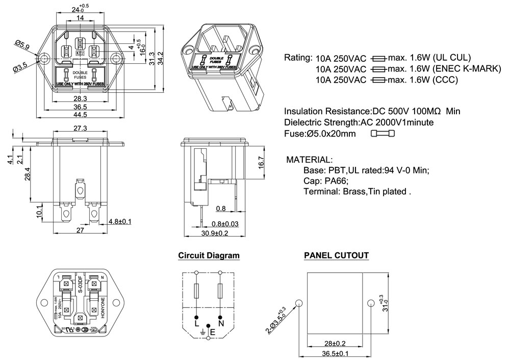 10A 250VAC max.1.6W (ENEC K-MARK)