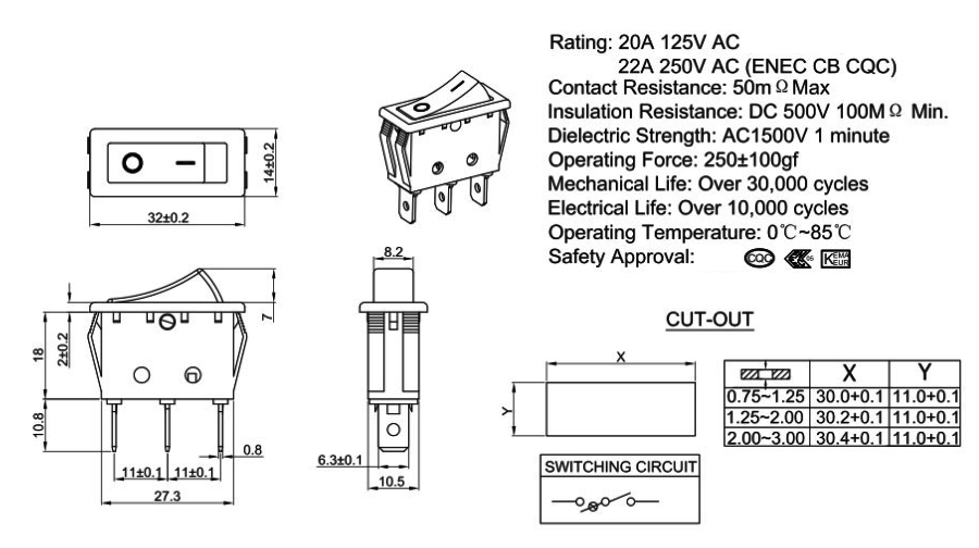 22A 250V AC (ENEC CB CQC)