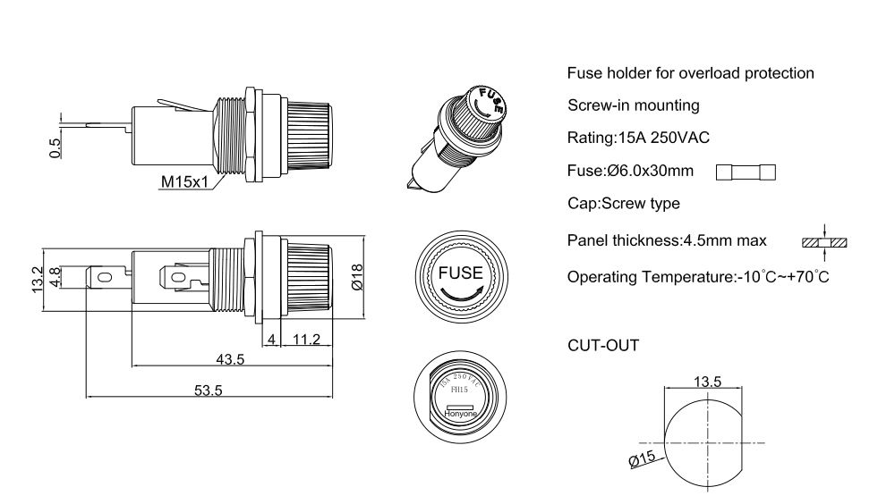 產(chǎn)品型號(hào):FH15-13 6*30 保險(xiǎn)絲
