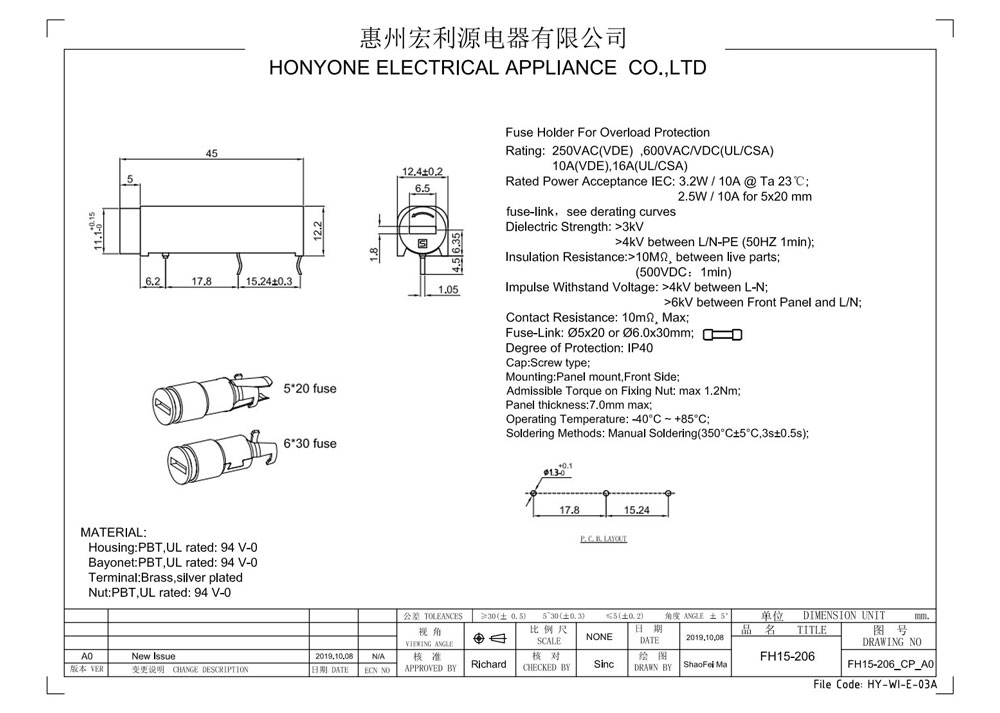 Fuse-Link:φ5x20 or φ6.0x30mm;