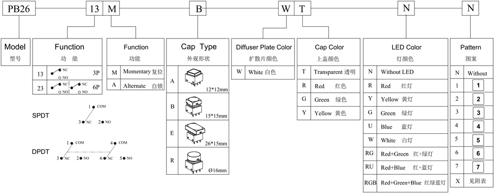 產品型號:PB26-13A-B-WT-RG-N