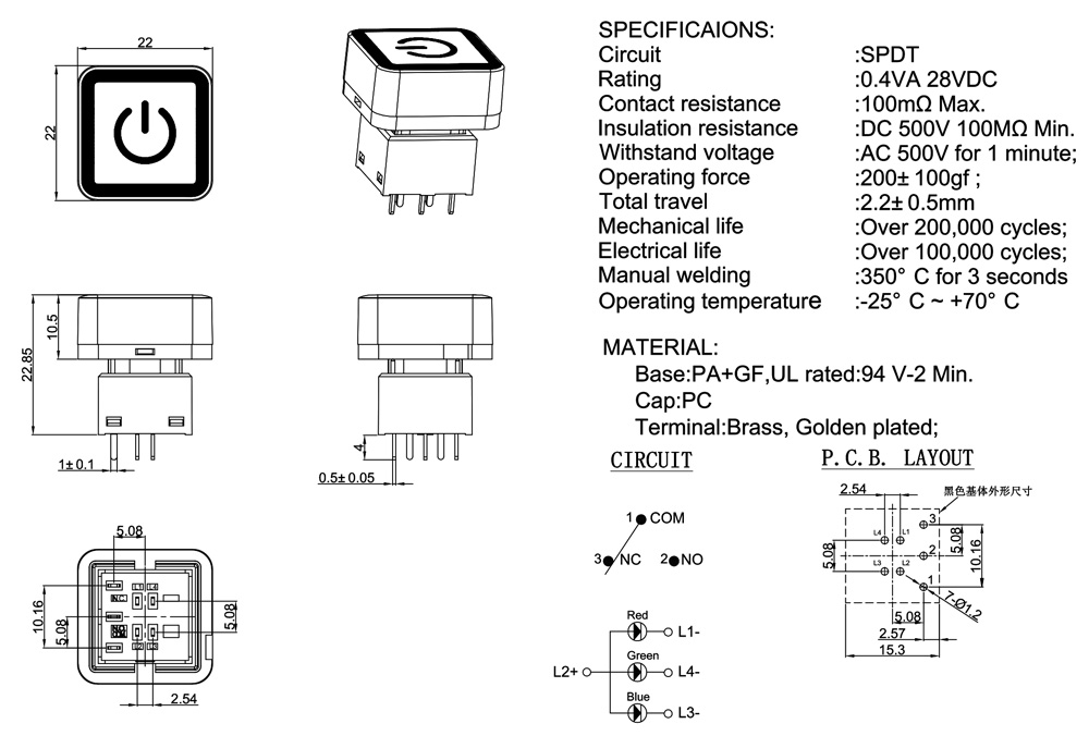 Operating force           :200±100gf ;