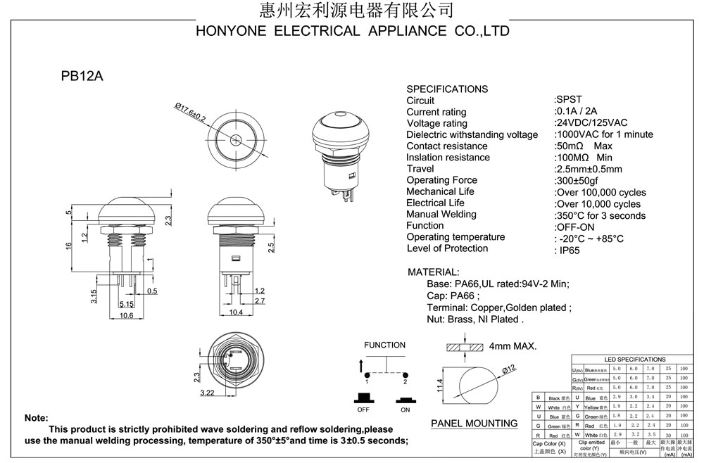 Dieletric withstanding voltage:1000VAC for 1 minute