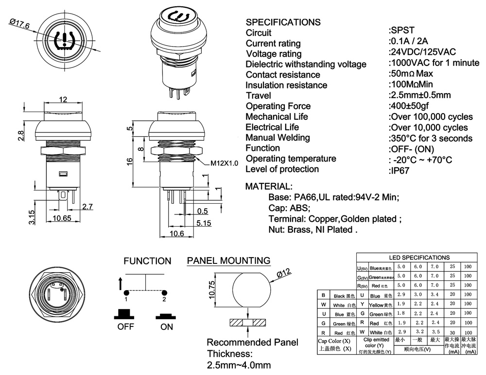 Mechanical Life        :Over 100,000 cycles