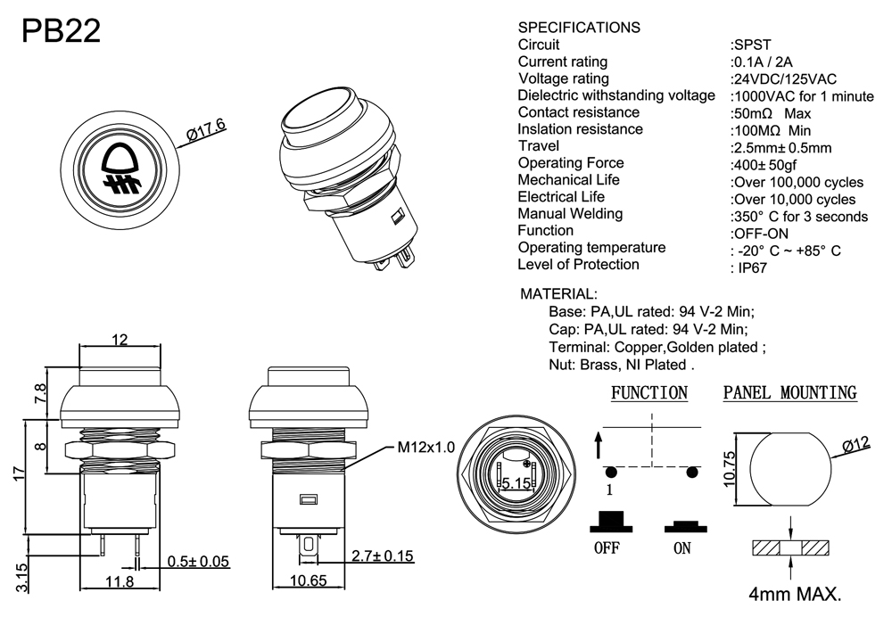 產(chǎn)品型號(hào):PB22-A-1B-N-A