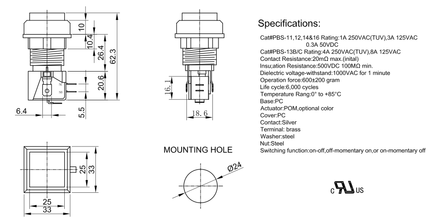 Dielectic votage-wothstand(WV):AC1500V 1 minute