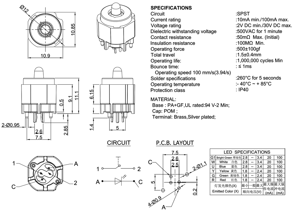 Solder specifications:260°C for 5 seconds