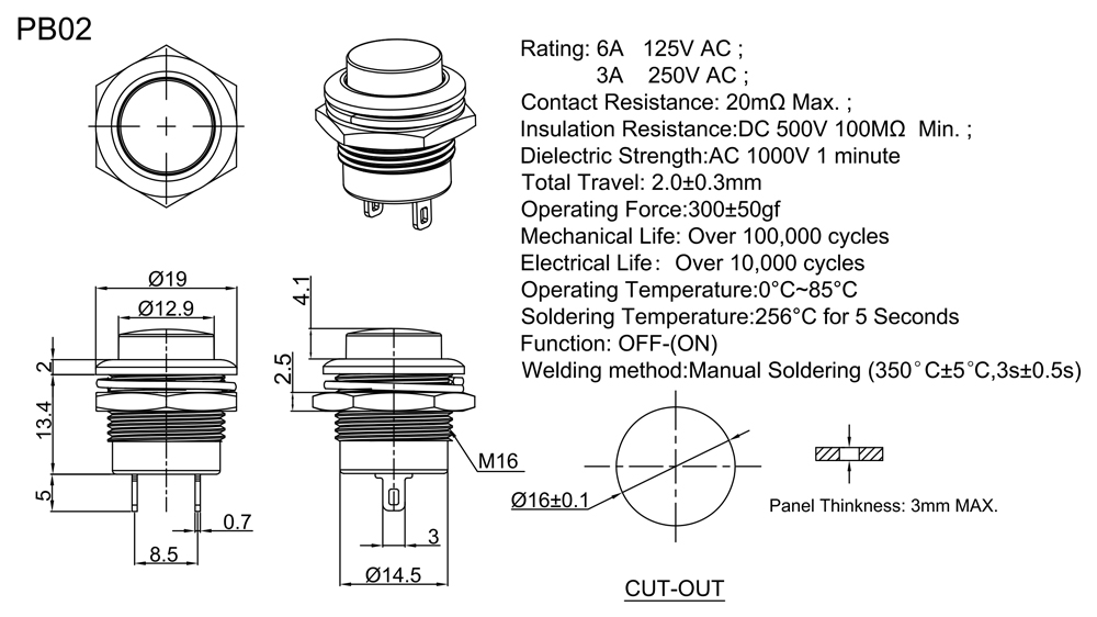 Rating:6A 125V AC/3A 250VAC