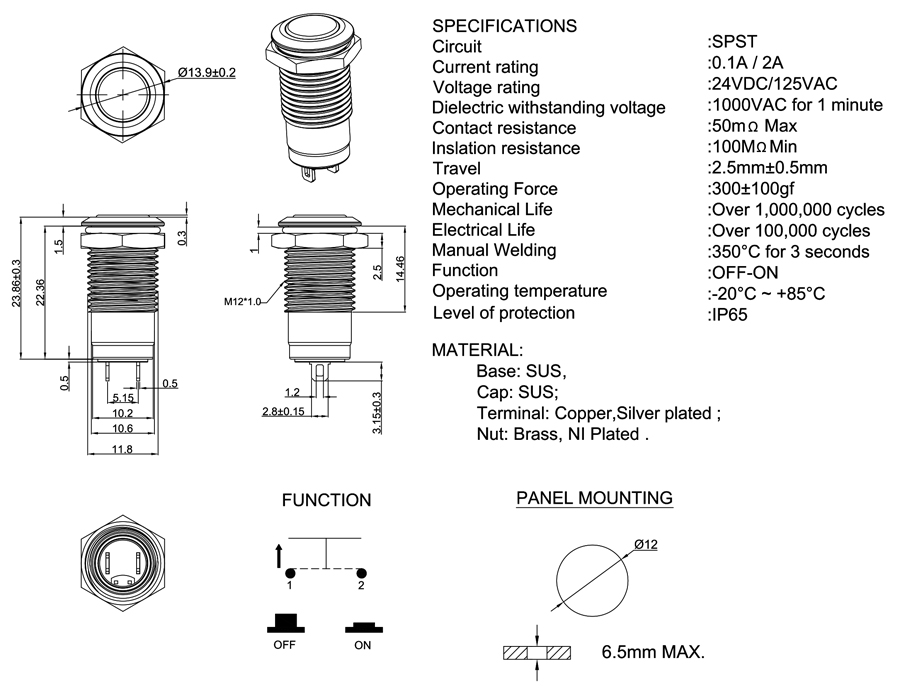 Mechanical Life                :Over 1,000,000 cycles