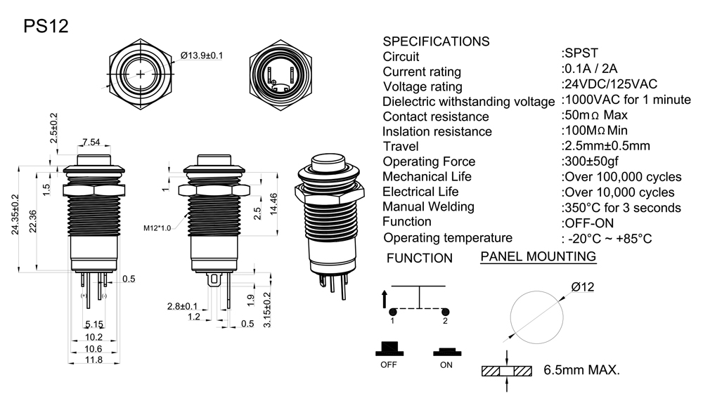 Full Travel :2.5mm±0.5mm Lock Travel :1.5mm±0.5mm