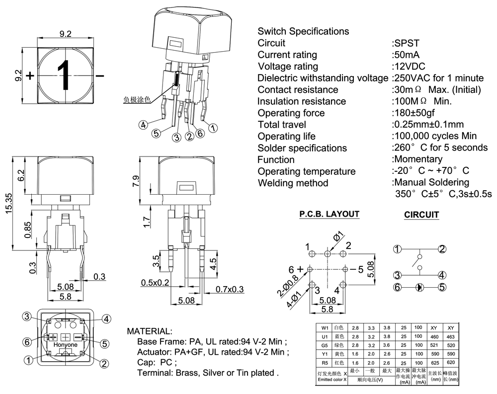 Operating Force                      :180±50gf or 250±50gf