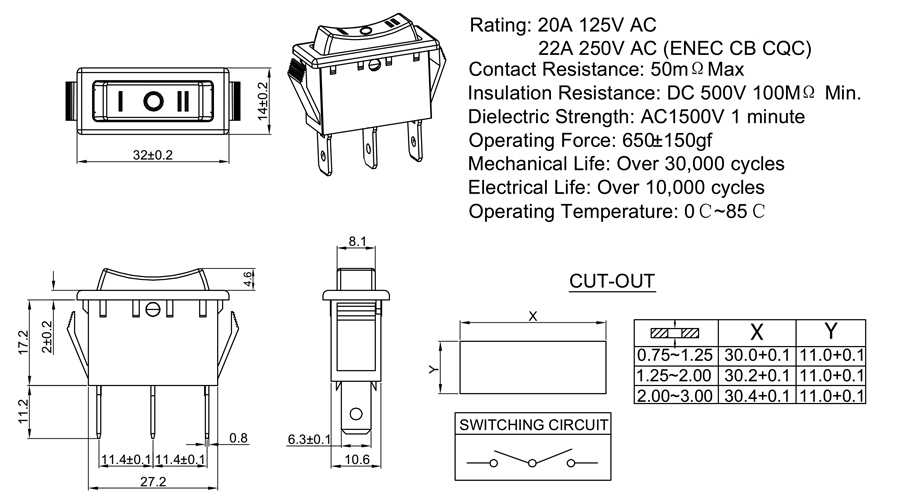 22A 250V AC (ENEC CB CQC)