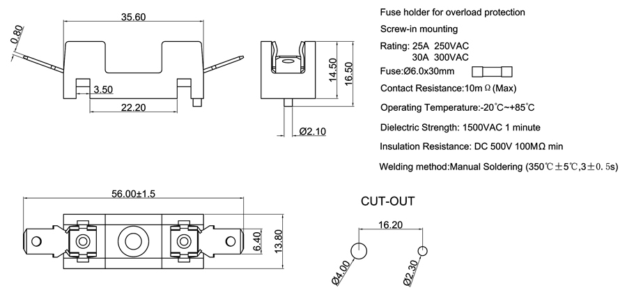 產(chǎn)品型號(hào):FH15-203 (6*30 fuse)