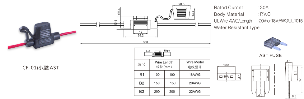 UL Wire-AWG/Length:20# or 18#AWG UL 1015