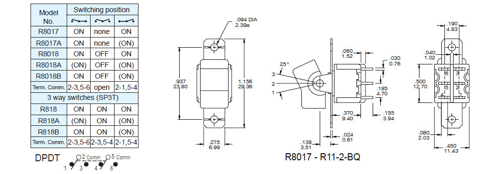 Contact Rating: 5A @125 VAC or 28 VDC (Q terminal)