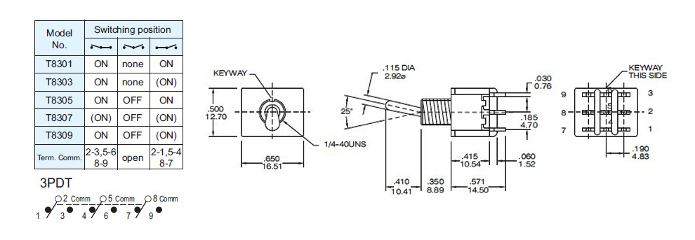 Contact Rating: 5A @125 VAC or 28 VDC (Q contact)