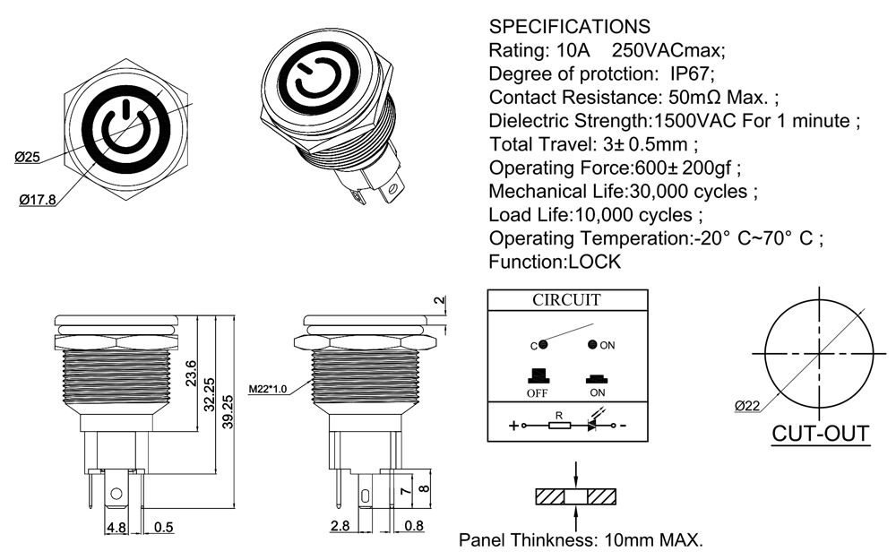 Rating: 10A 250VACmax;