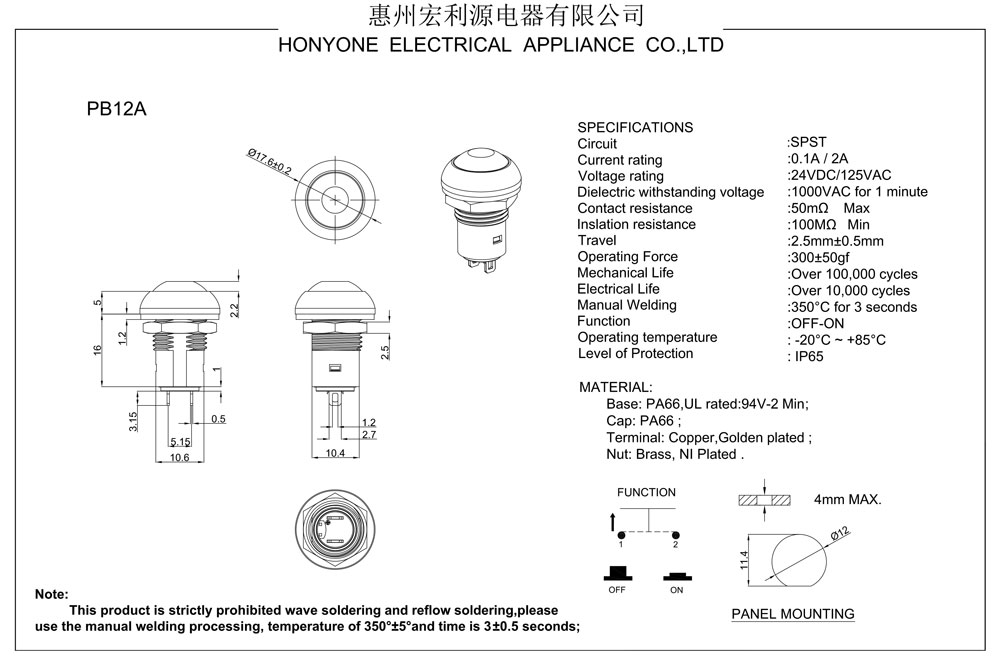 PRODUCT MODEL:PB12-A-1-RN(lock)
