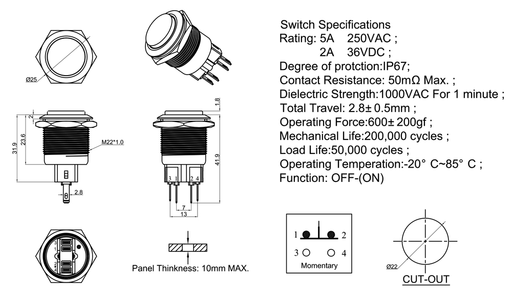 Mechanical Life:200,000 cycles ;