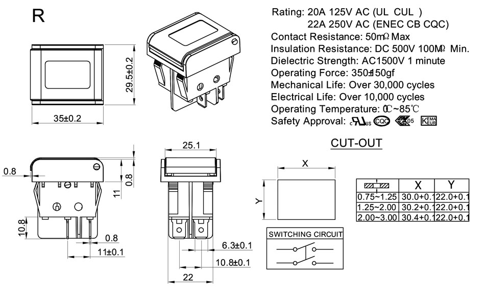 Rating:20A 125V AC (UL CUL)